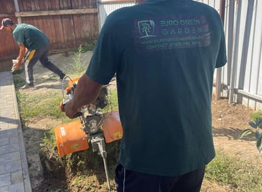 Curățăm terenul de buruieni, pietre și resturi, pentru a crea o bază curată și sănătoasă pentru noul gazon.